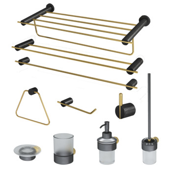 أجهزة حمام ذهبية سوداء من سبائك الزنك مثبتة على الحائط مجموعة ملحقات الحمام