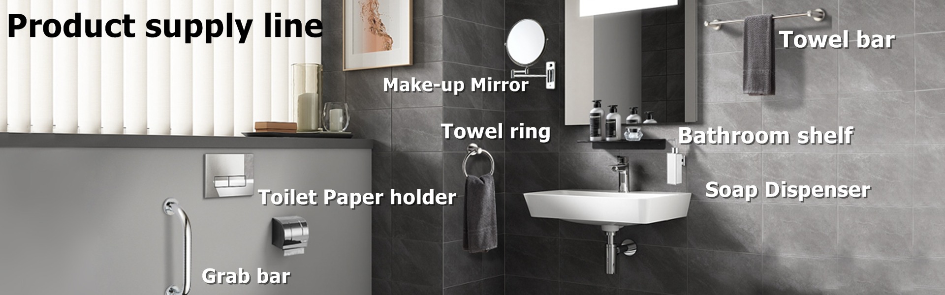 Ana ürünler:Banyo aksesuarları, rulo kağıt havlu tutucu, tuvalet fırçası tutucuları, sabunluk
